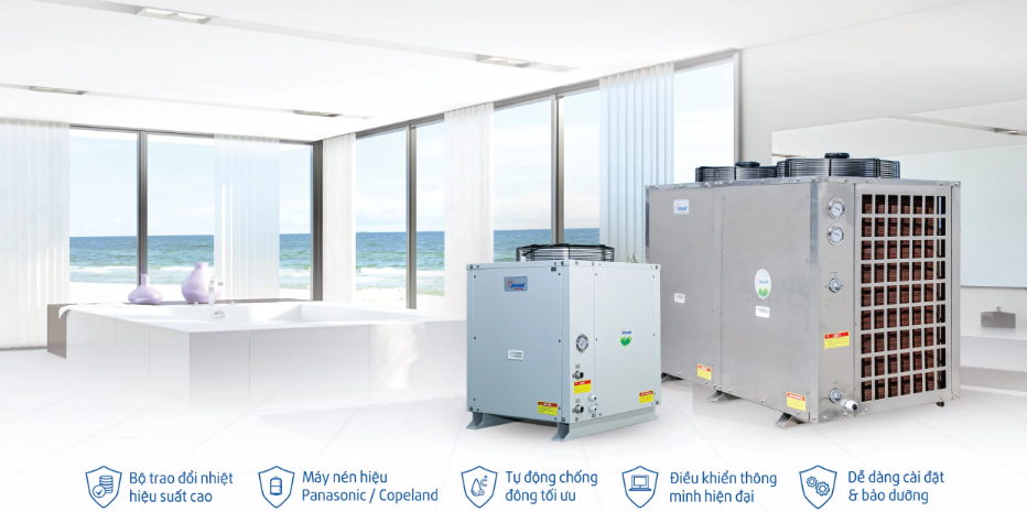 Máy nước nóng năng lượng không khí - bơm nhiệt là thiết bị cung cấp nước nóng dùng điện tuyệt đối an toàn và tiết kiệm tới 70 - 80% điện năng tiêu thụ do hiệu suất thiết bị đạt tới 400%. Đây là dòng sản phẩm thế hệ thứ 4 của bình nước nóng sau bình điện, gaz, năng lượng mặt trời. Sản phẩm được sản xuất trên dây chuyền hiện đại, đem lại hiệu quả kinh tế cao