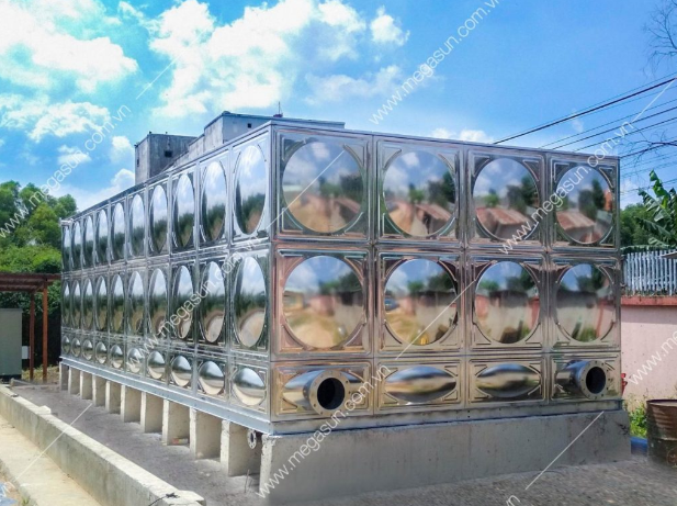 Bồn chứa nước lắp ghép công nghiệp Megasun dùng vật liệu inox cao cấp được sử dụng rộng rãi trong các công trình xây dựng dân dụng, công nghiệp, bể chứa chuyên dụng. Đảm bảo tốt nhất chất lượng nguồn nước chưa, chống hình thành tảo, rong rêu trong bể.