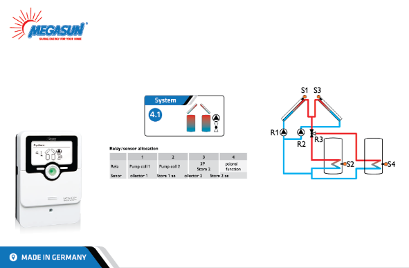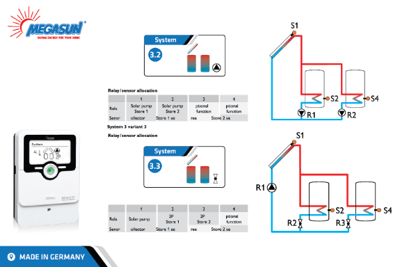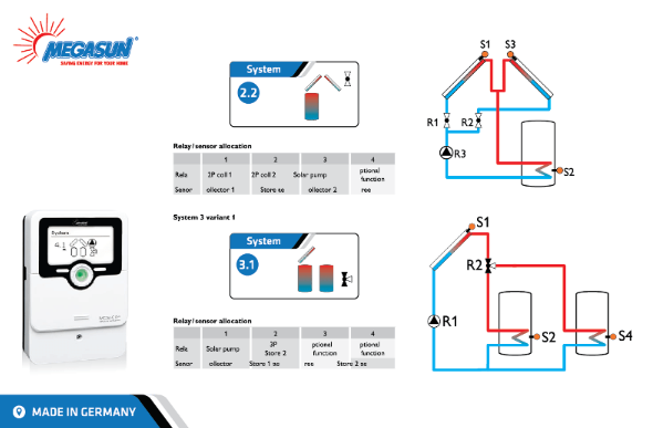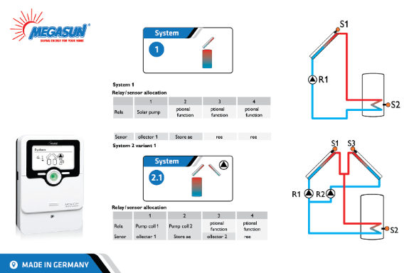 Điều khiển nhiệt độ, điều khiển tốc độ bơm, đo lượng nhiệt, đếm số lần hoạt động của relay, chức năng đối lưu, chức năng ưu tiên, chức năng hồi,