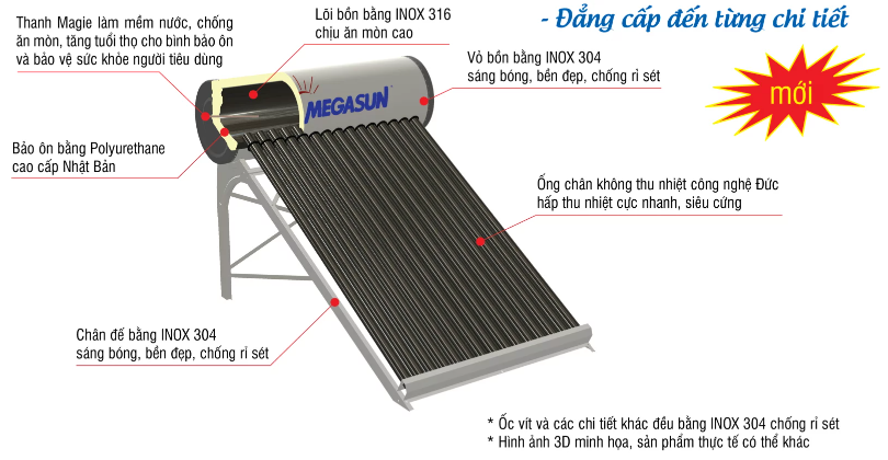 Ống thu nhiệt công nghệ Đức - mạ 5 lớp - hiệu suất hấp thụ trên 98% - Siêu bền - chịu lực va đập cao - sản phẩm đạt tiêu chuẩn xuất khẩu cho thị trường Châu Âu |