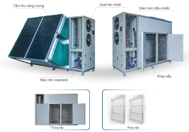 ệ thống sấy tích hợp bơm nhiệt và kết hợp tấm thu năng lượng mặt trời ( phần tấm thu là tùy chọn ) - là một hệ thống sấy nhỏ gọn , dễ sử dụng , hiệu suất cao. Giải nhiệt độ sấy trong khoảng 27 ° C - 85 ° C - hệ thống này phù hợp cho hộ gia đình và các nhà máy sản xuất nông sản khô.